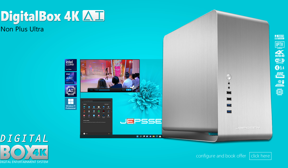 Support for Wake on Voice, active thermal monitoring, and advanced memory and storage management features ensure stability, security, and versatility. DigitalBox 4K designed for the future: capable of learning, adapting, and delivering power only when needed, always at your pace, always one step ahead.