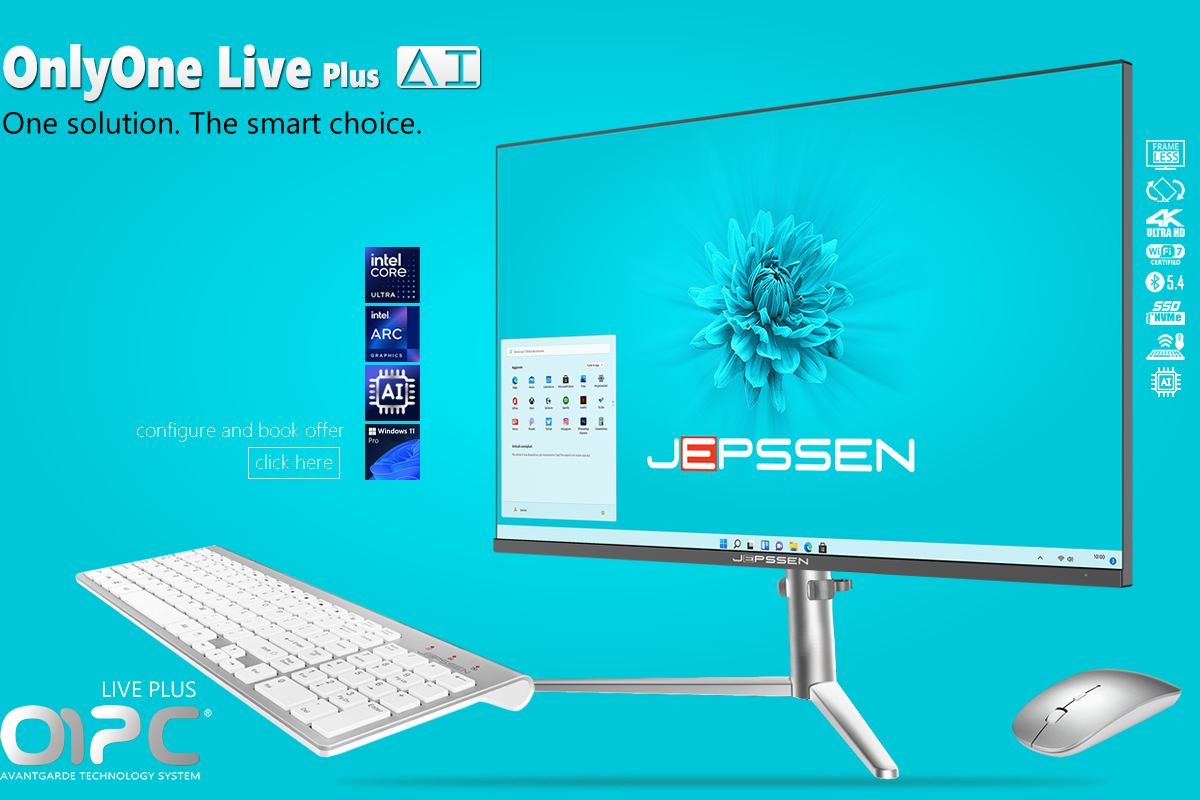 OnlyOne Live Plus is the ideal solution for any processing need and for any interior setting, combining the power of a high-end computer with top-level performance. Thanks to the latest Intel processors, advanced artificial intelligence features and a 24” LED Wide frameless display, it delivers outstanding visual quality in terms of color accuracy, sharpness and brightness, all wrapped in a refined and elegant design.