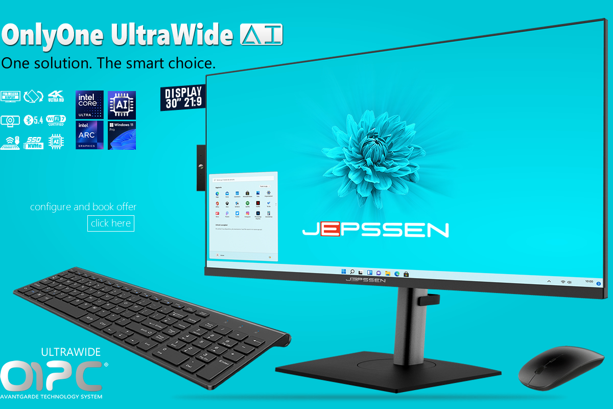 OnlyOne UltraWide is the ideal solution for any processing need and for any interior setting, combining the power of a high-end computer with top-level performance. Thanks to the latest Intel processors, advanced artificial intelligence features and a 30” LED UltraWide 21:9 frameless display, it delivers outstanding visual quality in terms of color accuracy, sharpness and brightness, all wrapped in a refined and elegant design.