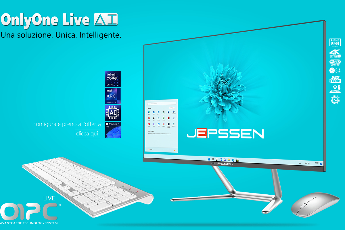 OnlyOne Live rappresenta una soluzione ideale per qualsiasi esigenza di elaborazione e per ogni contesto d’arredo, unendo la potenza di un grande computer a prestazioni di altissimo livello. Grazie all’impiego dei più evoluti processori Intel attualmente disponibili, alle avanzate funzionalità di intelligenza artificiale e a un display LED 24" 1080p senza bordo (frameless), offre un’esperienza visiva straordinaria per fedeltà cromatica, nitidezza e luminosità, il tutto racchiuso in un design elegante, raffinato e seducente.